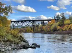 Replaced 1892 bridge; converted to footbridge in 1988.[1] Carries Spokane River Centennial Trail[2]