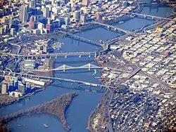 Aerial view of crossings in downtown Portland