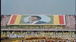 Thomas Sankara during his regime from 1983 to 1987 tried to prevent cults of personality, including hanging posters of him, claiming that there all already "seven million Sankaras".[25] Nevertheless, after his assassination, a posthumous cult of him arose in Burkina Faso arose after the 2022 Burkinabe military coup; a street in the capital Ouagadougou originally named after Charles De Gaulle for example was renamed after Sankara, and his body was exhumed into a mausoleum in 2025[26][27]
