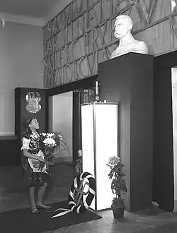 Mátyás Rákosi, the leader of the Hungarian People's Republic, was surrounded by a cult of personality similar to that of Stalin.[70] This peaked on his 60th birthday in 1952, which was commemorated with a series of nationwide celebrations.[71][72] Many things were named after him, including: