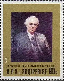 1988 post stamp featuring Enver Hoxha