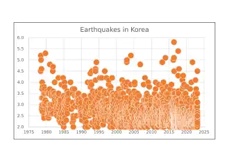 This is a part of list of earthquakes in South Korea equal or stronger than 5.0 ML since 1978.[4][5]