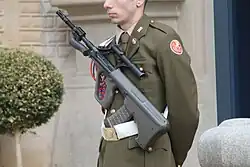 AUG A1 | Assault rifle | 5.56×45mm NATO | Standard service rifle that succeeded to the FN FAL and is being replaced by the HK416.[2]