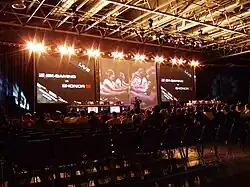 By the end of 2011, Dota 2 was already one of the highest-paying esport games, second only to StarCraft II.[83] At E3 2013, South Korean company Nexon announced the investment of ₩2 billion (approximately US$1.7 million) into local leagues in the country, which coincided with their distribution partnership with Valve for the game.[84] In February 2015, Valve sponsored Dota 2 Asia Championships was held in Shanghai with a prize pool of over $3 million, raised through compendium sales.[85][86] Since then, other Dota 2 Asia Championships have taken place, with it being sometimes being referred to as the "Chinese International".[87][88] In total, professional Dota 2 tournaments had earned teams and players over $100 million by June 2017, with over half of that being awarded at the International tournaments, making it the highest earning esport game by a margin of nearly $60 million.[89]