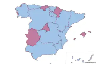 As of 2021, a total of 7 autonomous communities have never had a woman as president. Those regions are: Asturias, the Basque Country, the Canary Islands, Castile and León, Catalonia, Galicia and the Valencian Community and the two autonomous cities of Ceuta and Melilla. Only one autonomous community (Castile and León) has never seen a major party nominate a woman in a regional election.