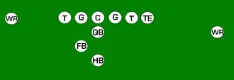 Also called the "split backs" or "three-end formation", this is similar to the I-formation and has the same variations. The difference is that the two backs are split behind the quarterback instead of being lined up behind him.