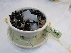 Grass jelly is a gelatinous dessert that is usually made from a plant in the mint family called Platostoma palustre. It and similar desserts can be made from other grass jelly plants.[1] Some are also used for making beverages.[2]