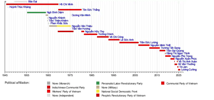 2 September 1945 | 2 September 1969 | 24 years | Indochinese Communist Party (until 1951) Worker's Party of Vietnam (from 1951) |