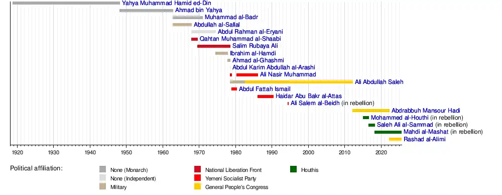 17 February 1948 | 19 September 1962[8] | 14 years, 214 days | Rassid | Son of Yahya | |
