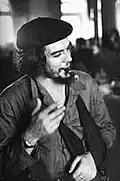 After Che Guevara was executed by US-trained Bolivian soldiers in 1967, his hands were cut off under orders from a CIA operative. Argentine law enforcement officials conducted a fingerprint analysis of the hands that was sent to Washington, DC.[63][14] Guevara's body was discovered in Villegrande, Bolivia, in 1997, without his hands.[64] His hands are rumored to have been taken to Cuba.[65] The search for his hands is the subject of the 2005 documentary film The Hands of Che Guevara.[66] | ||