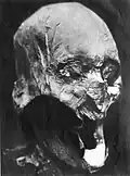 After the spy Mata Hari was executed by firing squad, her head was removed, embalmed, and sent to the Museum of Anatomy in Paris. In 2000, archivists discovered that it had disappeared, possibly as early as 1954, during the museum's relocation.[69] Her head remains missing.[70][71] | |