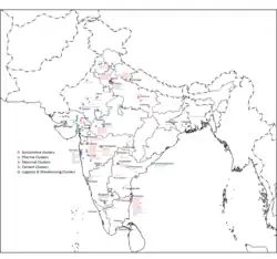 - ^ UNIDO Focal Point. "List Of SME Clusters in India". Methodology and the Action Plan for Updation of Data on SME Industrial Clusters. Ministry of Micro, Small & Medium Enterprises. Archived from the original on 7 September 2019. Retrieved 28 July 2012.