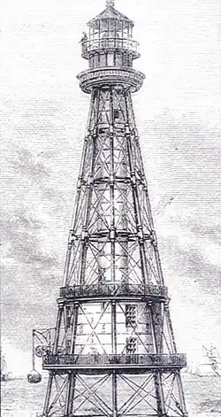 - D.^ The first tower was built in 1832 and collapsed in 1837. The second tower which still stands today was built in 1839 and deactivated after the civil war. The third tower also still stands today and was built in 1871 as a skeletal steel structure. This steel lighthouse lasted until 1965 when a fourth modern tower took its place. In 2007, the 1965 structure was demolished and a new small skeletal metal tower mounted atop a platform stands today.