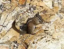 - Golden-mantled ground squirrel (Callospermophilus lateralis) meadows, forests, rocky areas, alpine tundra – common