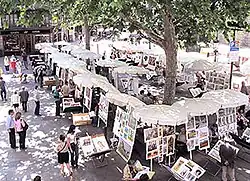 One of the most famous art markets in the city of Barcelona is the Mercadillo de la Placa de Sant Josep, also known as the Pintors del Pi market. Situated in the Placa de Sant Josep Oriol i Pi just under the church of Santa Maria del Pi, the market began in the 1970s when a group of Catalan artists decided to meet up to bring art to the streets of the city. Many different types of art are represented, including watercolors and oils, and representations vary from cityscapes to portraits. The market opens every weekend and usually showcases around 15 artists.[12][13]