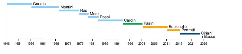 11 Alessandro Basso 18 April 2025 Incumbent Brothers of Italy