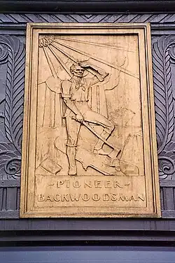 - Lincoln Bank Tower, 3 panels, Pioneer Backwoodsman, Preservation of the Union and Emancipation Proclamation[41] Fort Wayne, Indiana (1930)