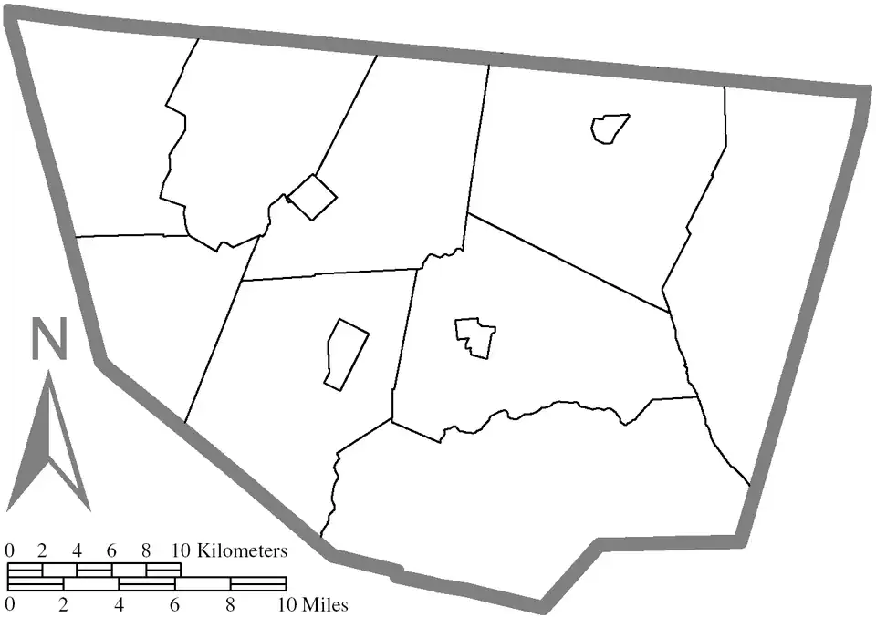 The map shown below is clickable; click on any municipality name to be redirected to the article for that borough or township.