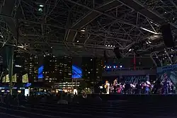 2,600[18] | Concert hall that houses the Toronto Symphony Orchestra.[18] It is known for its distinctive glass canopy design.[18] The hall was renovated in the early 2000s following criticism about poor acoustics.[18] | 1982[18] | Entertainment District