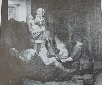 A mother with two children and a maid with a pail by a fireplace | 1675–1680 | 83.8 × 81.6 cm | private collection | unknown | |