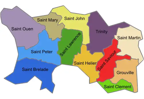 The island of Jersey is located in the Channel Islands and consists of a number of small towns, villages and uninhabited islands. Jersey is divided into twelve administrative parishes which are further subdivided into vingtaines, with Saint Ouen being the exception which uses cueillettes.[1]
