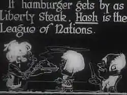 A political cartoon lampooning the name change of hamburger meat during World War I
