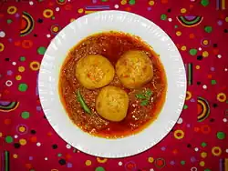 | Dum aloo | Indian subcontinent | Potatoes, usually smaller ones, are first deep fried, then cooked slowly at low flame in a gravy with spices.[8] | |