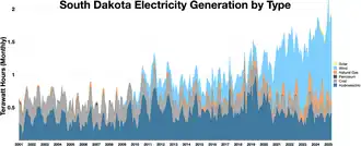 - ^ a b c "Electricity Data Browser, Net generation for all sectors, South Dakota, Fuel Type-Check all, Annual, 2001–23". www.eia.gov. Retrieved 26 June 2024.