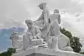 Tazza fountain and flanking naiads | Italian Gardens | 1861 | John Thomas | Sculptures | Grade II | The four large marble basins of the fountain, in the form of scallop shells, are supported by bi-tailed mermen, and the two naiads are each accompanied by a swan.[6] | |
