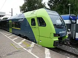 RE 74 Kiel Hauptbahnhof – Felde – Rendsburg – Owschlag – Schleswig – Jübek – Husum 134 60 min 1–2 × Stadler Flirt battery nordbahn