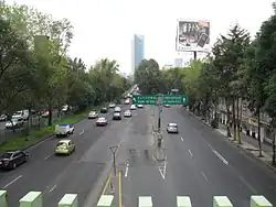A portion of the Circuito Interior, José Vasconcelos Avenue between Colonia Condesa and Colonia San Miguel Chapultepec, looking east in Mexico City.