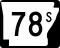Arkansas state highway spur routes are signed using standard state highway shield backgrounds. The number remains the same size and a "S" (for spur) is added in an almost-exponential format. Shield sizes remain, one-digit routes keep the 24-by-24-inch (61 cm × 61 cm) shields, while two-digit routes become 24-by-36-inch (61 cm × 91 cm). Three-digit routes are the same as the parent route with the "S" placed in the available corner space. The "Spur" banners are usually not used by ArDOT, which instead prefers to use only a direction banner.
