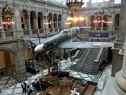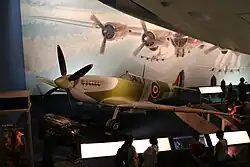 • Spitfire Mk.XVIe TE214. On display and in the early stage of restoration[43] at the Canadian Warplane Heritage Museum, in Mount Hope Ontario, it was previously on loan from the Canada Aviation and Space Museum in Rockcliffe, Ontario. It was built by Vickers at Castle Bromwich, UK, in 1945 and it flew post-war with RAF No. 203 Advanced Flying School until it was damaged in an accident. The British Air Ministry presented it to the RCAF in 1960 and it was transferred to the Canadian Aeronautical Collection, now the Canada Aviation and Space Museum in 1966, and with the ownership transferred to the Canadian Warplane Heritage Museum in 2022.[44]