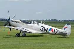 • Spitfire LF Mk IXc MK732 (PH-OUQ). Operated by The Historic Flight of the Royal Netherlands Air Force (Koninklijke Luchtmacht Historische Vlucht) and based at Gilze-Rijen. Built in 1943, it saw action during D-Day. Following the restoration to flight, it initially carried the air force (Klu) markings H-25. Following this it was painted in the scheme it wore when serving with No. 485 Squadron RNZAF as OU-U, named 'Baby Bea V', but now wears an all-over silver scheme 3W-17 of the Royal Netherlands Air Force.[90]