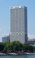 The city of Milwaukee, Wisconsin, is home to 119 high-rise buildings or skyscrapers,[1] 55 of which stand at 200 ft (61 m) or taller. The majority of the city's tallest buildings are located north of the Interstate 794, south of Juneau Avenue, east of Interstate 43, and west of Lincoln Memorial Drive. There are additional high-rises extending northward along Lake Michigan. The tallest building in Milwaukee, and Wisconsin, is the 42-story, 601 ft (183 m) tall U.S. Bank Center, which was completed in 1973.[2] The second-tallest is the 32-story, 550 ft (170 m) tall Northwestern Mutual Tower and Commons building, completed in 2017.[3][4]