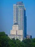 The history of skyscrapers in Milwaukee began with the Pabst Building. Completed in 1891, and standing 235 ft (72 m) tall, it was Milwaukee's first skyscraper, and the tallest building in the city until the Milwaukee City Hall was completed four years later. The Pabst Building was demolished in 1981. For nearly eighty years, from 1895 to 1973, City Hall dominated the skyline, and was at the time of its completion, the tallest habitable building in the United States.[5] A significant building boom occurred in the 1960s, resulting in eleven of the top sixteen tallest buildings of the time having been built in that decade, and then between 1985 and 1991, six of the eight tallest buildings of the time were constructed. But a third significant building boom in the twenty-first century includes the construction of the Moderne, a skyscraper with luxury condominiums, the 833 East Michigan office building, the Potawatomi Casino Hotel, the Northwestern Mutual Tower and Commons, the 25-story, 335 feet (102 m) tall BMO Financial Center, the 34-story, 387 feet (118 m) tall 7Seventy7 Residential tower, the mass timber Ascent MKE, the 44-story, 537 ft (164 m) tall Couture, and the 31-story, 342 ft (104 m) tall 333 North Water luxury apartment tower, all built since 2012. Future under-construction or approved skyscrapers include the resurrected 27-story, 301 feet (92 m) tall Goll Mansion Apartment Tower and the 32-story 362 ft (110 m) tall Edison, resulting in nine of the sixteen tallest buildings in the city having been constructed since 2005.[6] Another six high-rises have been proposed since the beginning of 2017.