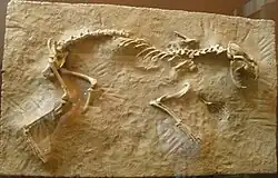 Mounted fossilized skeleton of the Miocene horse Acritohippus - Acteon