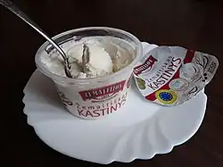 Jāņu siers (English: Jāņi cheese) is a fresh sour milk cheese. The production method, according to the TSG-application is: "'Jāņu siers' is produced from milk and curds; these are heated to remove the whey, and butter or cream, eggs, salt and caraway seeds are added to what is left. The resulting mass is heated and intensively stirred until a homogeneous consistency is obtained.".[35]