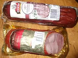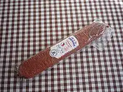 Liptovská saláma (Slovakian) / Liptovský salám (Czech) is a type of salami made of pork and beef. It is adapted from the Czechoslovak Industry standard ON 57 6913, which was adopted in 1978.[5]