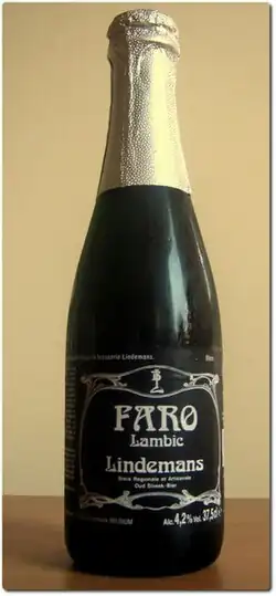 Historically, a low-alcohol, sweetened beer made from a blend of lambic and a much lighter, freshly brewed beer to which brown sugar (or sometimes caramel or molasses) was added. The fresh beer was referred to as meertsbier, and was not necessarily a lambic.[83] Sometimes herbs were added as well. The use of meertsbier (or water) and of substandard lambic in the blend made this a cheap, light, sweet drink for everyday consumption. The 19th century French poet Charles Baudelaire commented on faro's disagreeable aftertaste, "It's beer that you drink twice", believing that the Faro in Brussels was brewed from the waters of a river (the Senne or Zenne) that was also used as a sewer.[84]