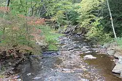 Catawissa Creek is a 41.8-mile (67.3 km) long creek flowing into the Susquehanna River with 26 named tributaries, of which 19 are direct tributaries.[1] The creek flows through Luzerne, Schuylkill, and Columbia counties in Pennsylvania. The two shortest tributaries are approximately 1 mile (1.6 km) long, while the longest is about 10.8 miles (17.4 km) in length. The tributaries include seventeen runs, six creeks, and three hollows (unnamed streams named after named valleys that they flow through).[1][2] By length, the five largest tributaries of Catawissa Creek are Little Catawissa Creek, Tomhicken Creek, Scotch Run, Beaver Run, and Messers Run. By watershed area, the five largest tributaries are Tomhicken Creek, Little Catawissa Creek, Beaver Run, Scotch Run, and Messers Run.