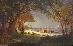 | Emigrants Resting at Sunset (possibly same as Emigrants Camping) | 1861? | Oil on canvas | 94 cm × 147.3 cm (37.0 in × 58.0 in) | R. W. Norton Art Gallery, Shreveport, LA 32°27′31″N 93°44′27″W / 32.458716°N 93.740959°W[2]: 332 | |