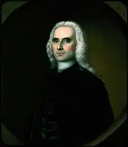 1753 Portrait of Gurdon Saltonstall (c. 1753–1763), oil on canvas view 30 × 25 in. (76.2 × 63.5 cm.) Lyman Allyn Art Museum, New London, Connecticut Subject: Brigadier General Gurdon Saltonstall (1708–1785); son of colonial Connecticut Governor Gurdon Saltonstall (1666–1724) and Elizabeth Rosewell (1679–1710); husband of Rebecca Winthrop (1711–1776). IAP 07300020