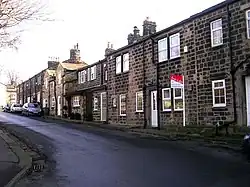 The historic core of the village is laid out in a formal terraced manner with two- and three-storied weaver cottages along narrow streets. South of Micklefield Lane a more formal landscape with larger houses, strong boundary treatments and a more landscaped setting is found. The late 19th century terraces are mostly two-storey buildings with grand bays, dentilled eaves, architraves and some rooms within gable features. Local sandstone is the predominant building material, with the roofs being made of stone slabs or slate. Gateposts, mall front gardens and yards bounded by stone walls with coping stones are characteristic for the village. Some traditional stone paving has survived. Only two of the key historical buildings, Buckstone Chapel and the Sunday School, were demolished in 1992.[7]