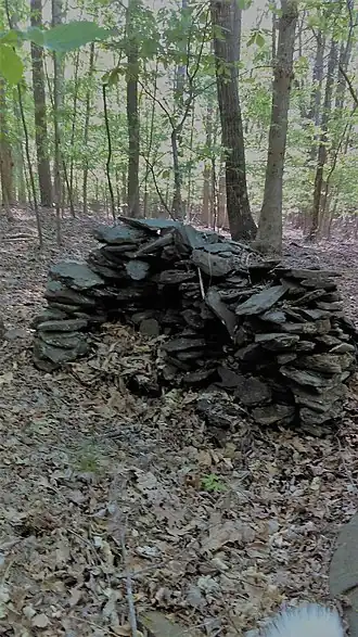 The Little Mulberry Indian Mounds are a series of carefully stacked rock piles located in Little Mulberry Park, Dacula, Georgia. In 1990, architect Michael Garrow counted 200 of these stone mounds while surveying the land ahead of a proposed golf course residential development.[2] The stone piles are typically circular or semicircular in shape. Most of those that have been examined archaeologically have revealed no cultural artifacts beyond the stone structure, while a few have been found to have historical 19th-century artifacts underneath them.
