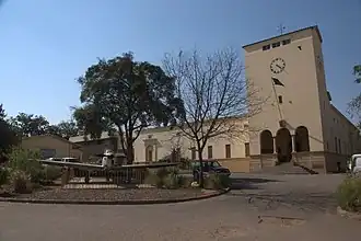 The Livingstone Museum is the largest and the oldest museum in Zambia, established in 1934 as the David Livingstone Memorial Museum.[1][2] In 1948, Captain A.W. Whittington offered to sell the two specimens of a fossilized human femur ("Rhodesian man") to the Rhodes-Livingstone Museum, but the museum could not afford to make the purchase.[3][4] A new Spanish colonial-style building was launched in the year 1951. Jock Millar, former mayor of Livingstone, requested that Harry Susman donate a 'four-faced' tower clock to the museum, but before it was unveiled in the museum, Susman died.[5]