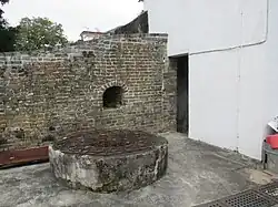 Inside Lo Wai. Water well next to the entrance tower of the village.