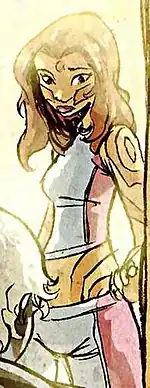Born in Maui, Hawaii of mixed Native Hawaiian and Caucasian ancestry, Alani Ryan quickly developed a talent for surfing. Her mutant powers activate after she and her father are attacked by the villain Great White and his pack of trained sharks. However, they are rescued by Namor. Afterwards, Alani's grandmother Alice Ryan is revealed to be a former acquaintance of Namor and a friend of his former lover Betty Dean. It is also revealed that her "tattooed" appearance is an aspect of her mutation.[1]