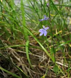 It is an annual species, with seeds germinating in either the autumn or spring. It produces a spike of blue flowers in the spring, and during wet summers it can remain in bloom until October.[1]