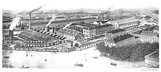 The factory was built in 1839 by the Vienna-Raab Railway between the Vienna Südbahnhof and Vienna Ostbahnhof and stocked with machinery, much of which was from England. The first locomotives and coaches were built in 1840 based on American prototypes. These were also the first railway vehicles to be built in Austria. The manufacture of railway vehicles was difficult because at that time in Austria there were still no iron foundries and none of the workers had the training for this type of work.